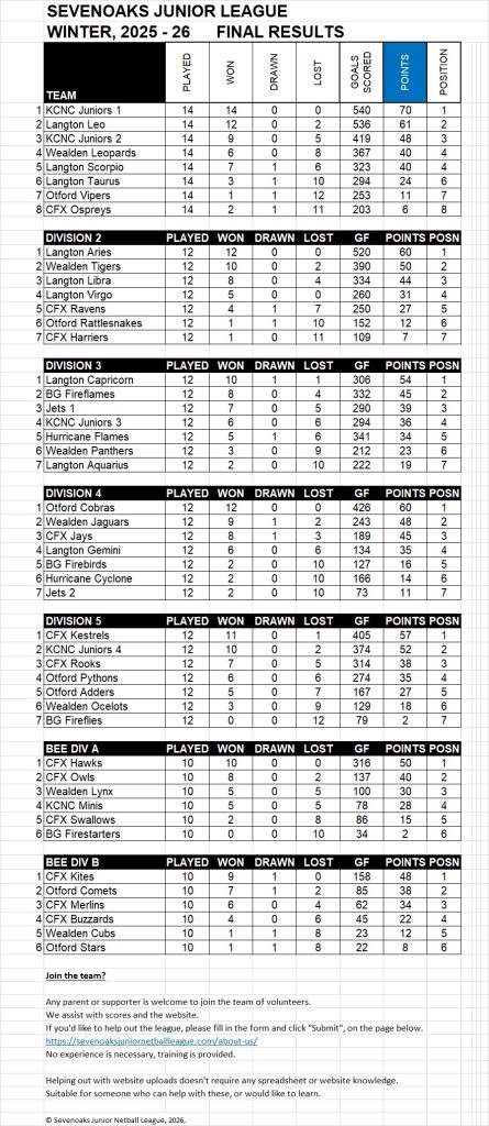 (Previous) Fixtures, Winter 2025/26